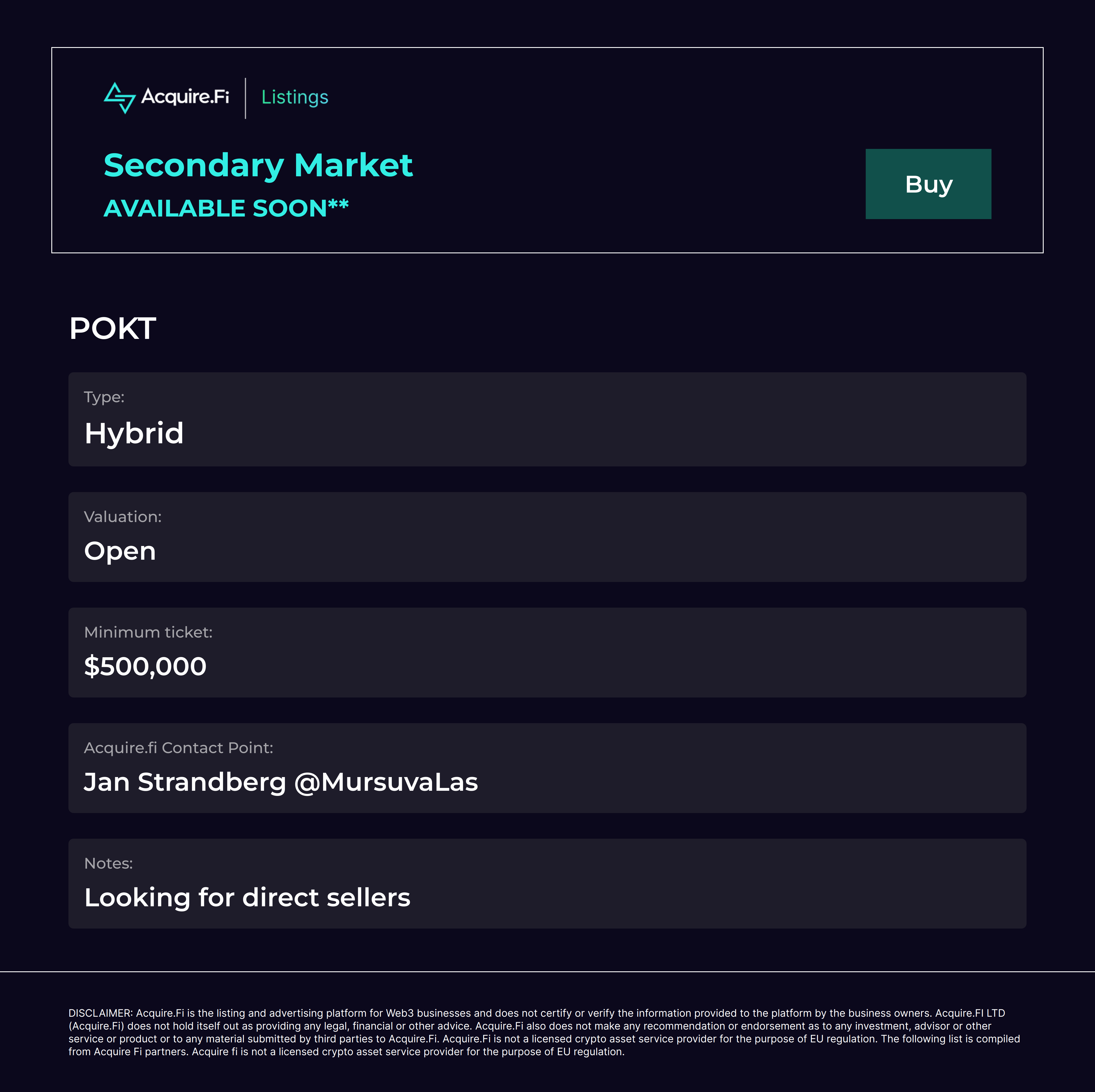Secondary Market Buy: POKT